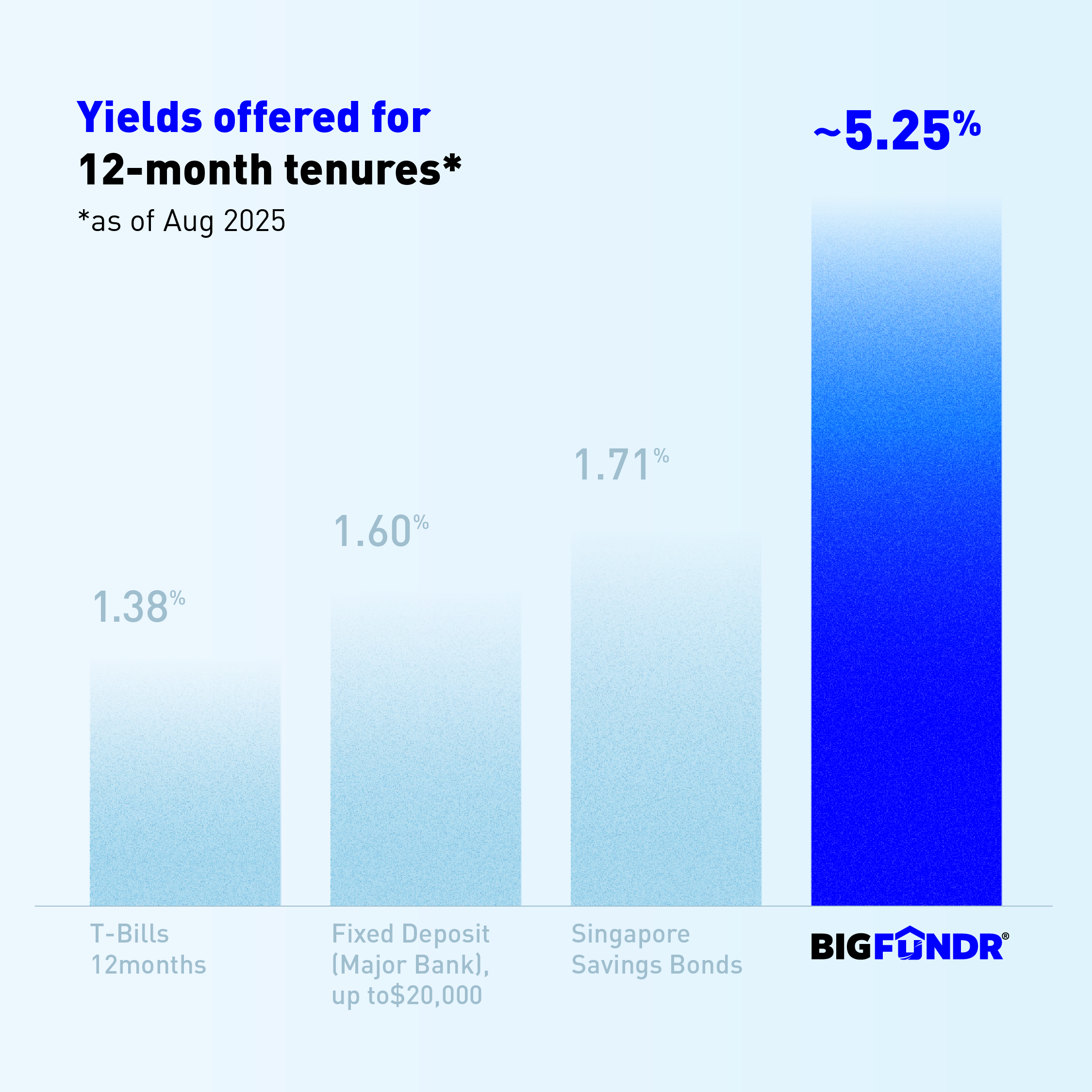 Choose from Deals offering durations from 6 to 12 months. Investments start from a minimum of S$1,000.